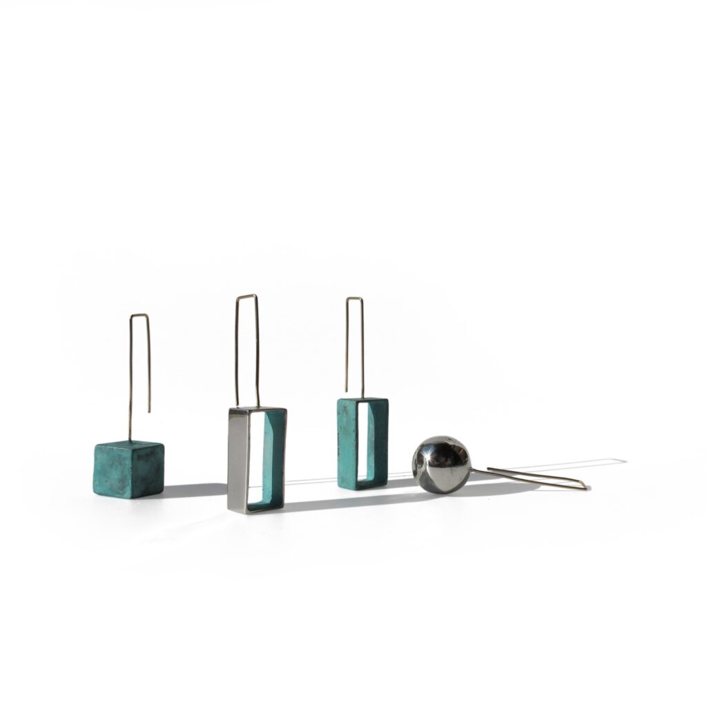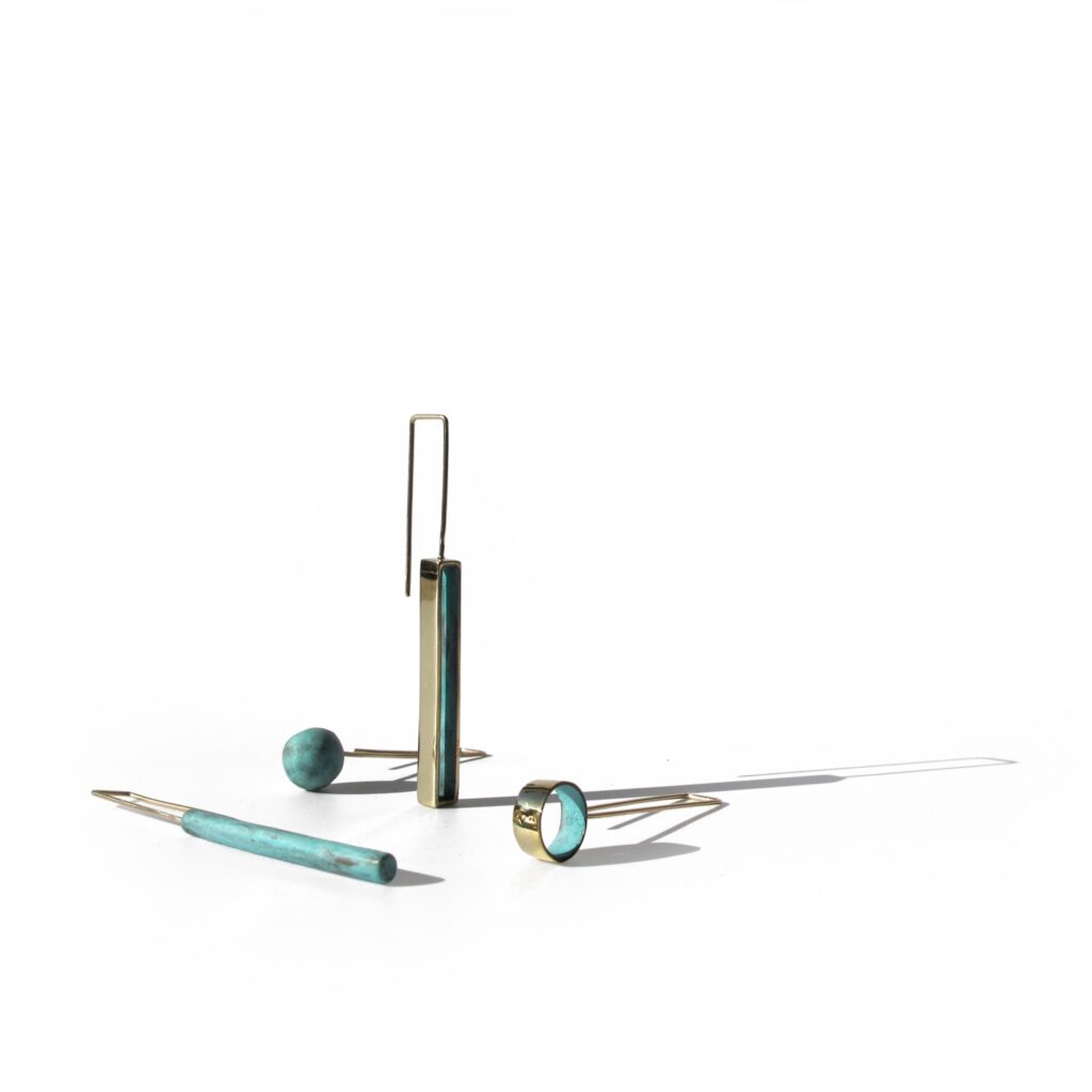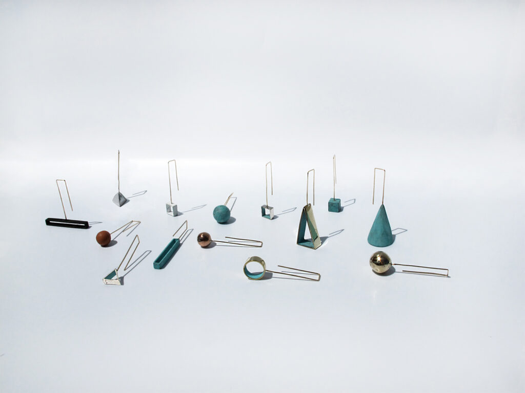Brazilian jeweler Michele experiments with volumetric jewelry by contrasting mass and weightlessness, clashing finishes and mismatching shapes. Pieces in copper, silver, brass and terracotta showcase their journey by exposing the process and simply allowing beautiful materials to enact with their flaws and virtues.